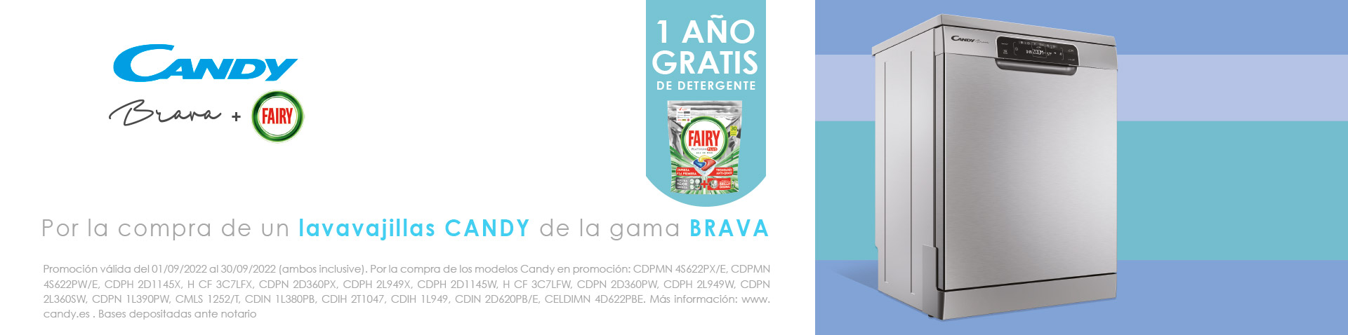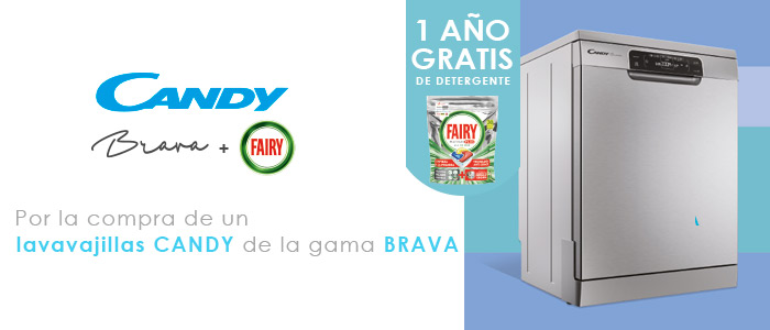 1 Año de detergente Fairy Gratis con tu lavavajillas Candy gama Brava.